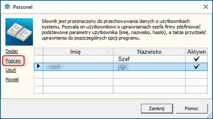2. Wybrać Popraw, aby przejść do edycji danych użytkownika.