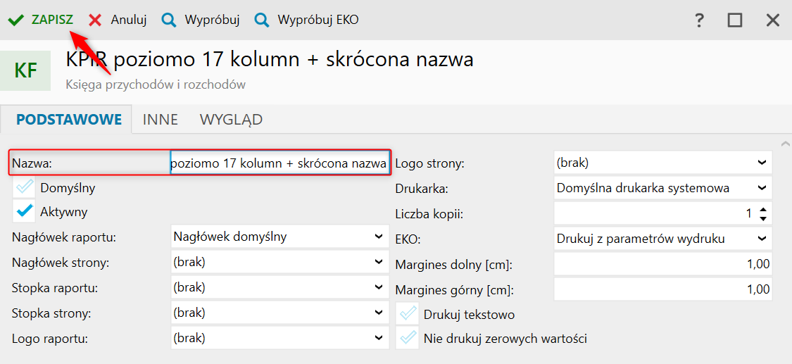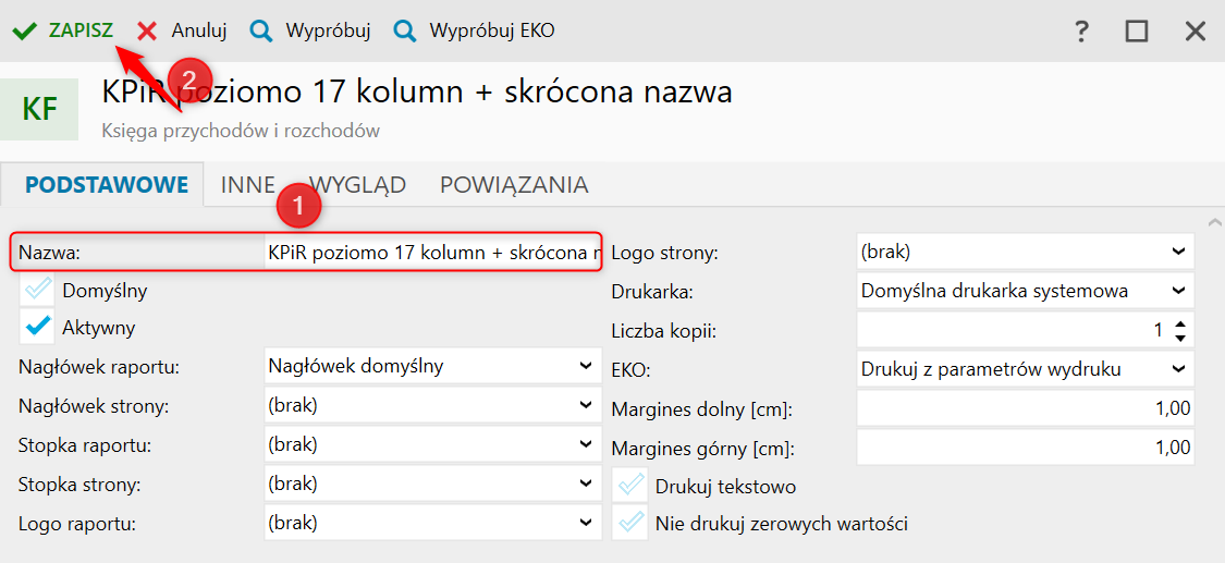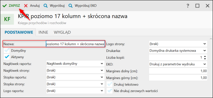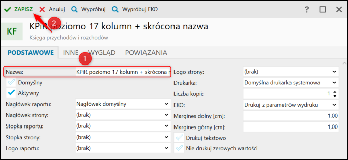 Rachmistrz nexo – Jak ustawić drukowanie nazwy skróconej na wydruku KPiR przez zaawansowaną edycję wzorca wydruku?