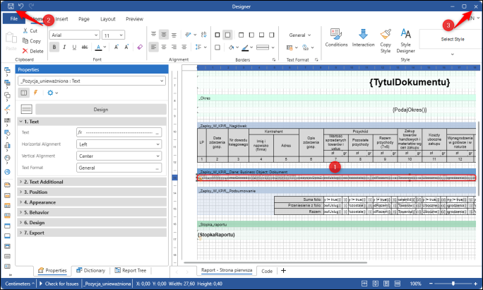 UWAGA!! Poniższy artykuł przedstawia zaawansowaną edycję wzorca wydruku. Konfiguracja wydruku przez program Stimulsoft przeznaczona jest dla zaawansowanych użytkowników znających strukturę bazy danych programów linii nexo, posiadających wiedzę programistyczną z języka C#, a także znających działanie aplikacji Stimulsoft. W razie problemów prosimy o kontakt z naszymi lokalnymi serwisantami w celu konfiguracji.