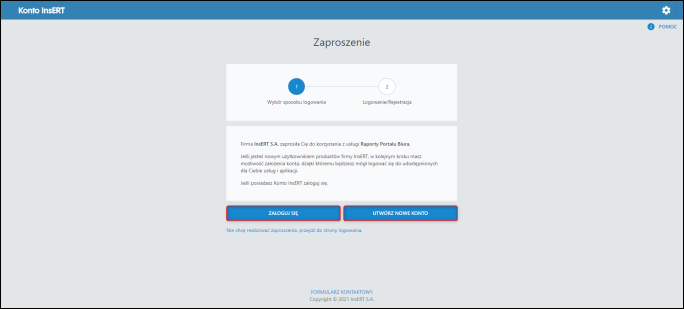 2. Zalogować się do istniejącego Konta InsERT lub Utworzyć nowe konto.