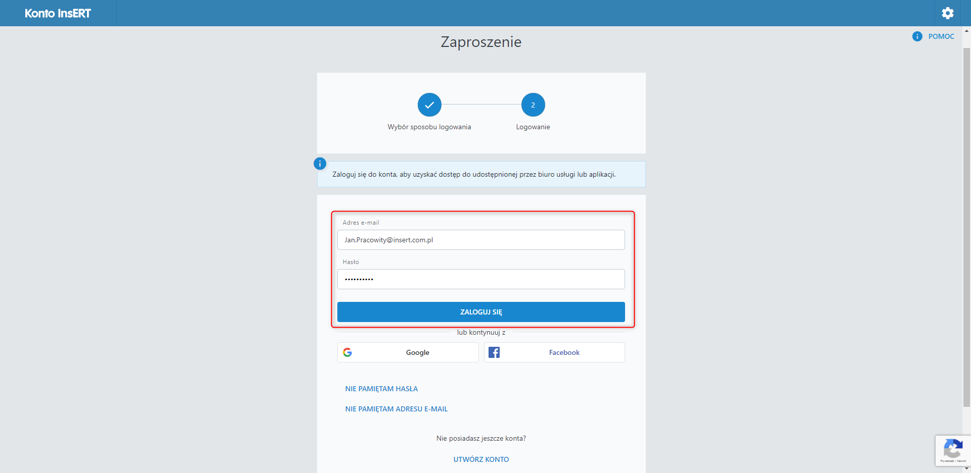Jak przyjąć zaproszenie umożliwiające korzystanie z Portalu Biura?