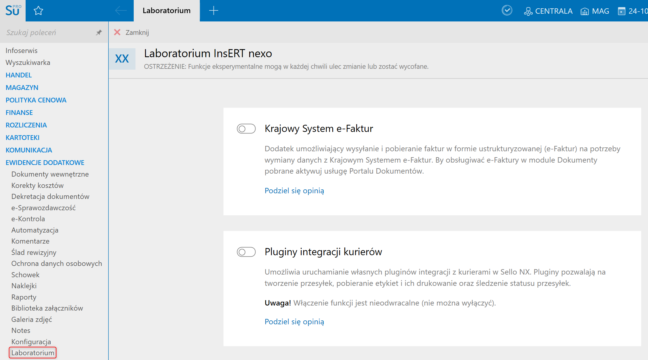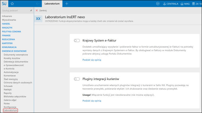 Celem Laboratorium jest umożliwienie użytkownikom skorzystania z planowanych nowości i ich sukcesywny rozwój, dlatego przy każdej funkcji udostępniony został link Podziel się opinią, który umożliwia bezpośrednie przekazanie uwag i sugestii.