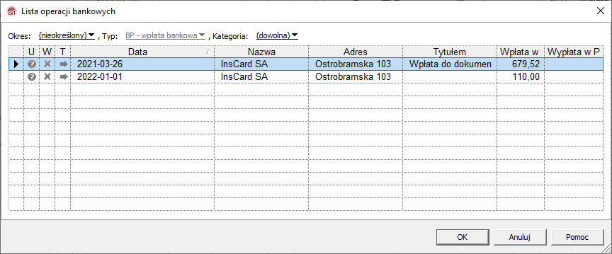 3. Podłączyć wpłatę do operacji bankowej od kontrahenta Przelewy24 (utworzonej ręcznie lub wczytanej z wyciągu w Homebankingu​). W sekcji Rozliczenia program uzupełni tytuł wpłaty (na podstawie podłączonej operacji bankowej lub rozliczeń), kwotę transakcji (z pliku), kwotę prowizji (na podstawie różnicy między kwotą transakcji oraz kwotą wpłaty) oraz kwotę wpłaty (na podstawie wskazanej operacji bankowej). Użytkownik powinien upewnić się, czy kwota prowizji zgodna jest z kwotą podaną na wyciągu od operatora Przelewy24. Aby dokonać rozliczenia należności (powstałych w wyniku cesji) na operatora szybkich płatności, należy zaznaczyć opcję Rozlicz należności (opcja ta domyślnie jest zaznaczona).​