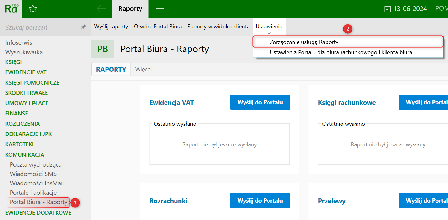 W celu wyłączenia usługi raporty dostępnej w Portalu Biura w programie Rachmistrz nexo lub Rewizor nexo należy: