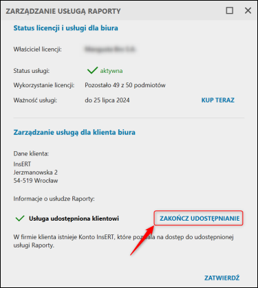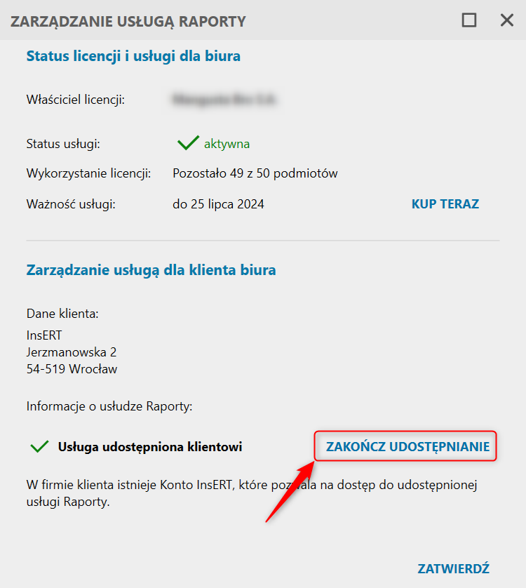 InsERT nexo – Jak dezaktywować usługę Raporty dostępną w Portalu Biura?