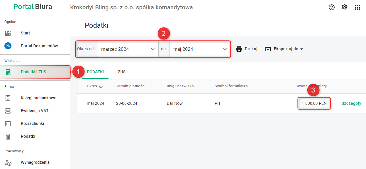 Portal Biura – Jak sprawdzić kwotę do zapłaty za zaliczkę miesięczną/kwartalną PIT?