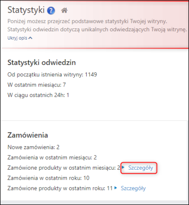 2. Wybrać Szczegóły przy Zamówione produkty w ostatnim miesiącu.