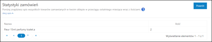 3. W rezultacie pojawi się spis wszystkich zamawianych towarów w ciągu ostatniego miesiąca.