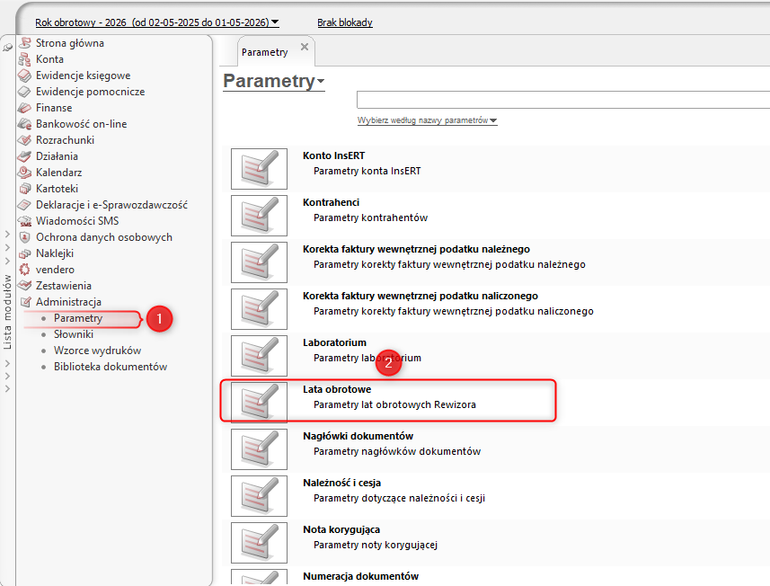 1. Przejść do modułu Administracja – Parametry – Lata obrotowe i poprawić wybrany okres.