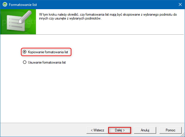 3. W następnym kroku zaznaczyć Kopiowanie formatowania list.