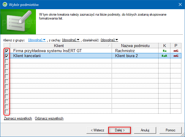 Biuro GT – Jak zbiorczo skopiować parametry formatowania list do podmiotów obsługiwanych przez biuro rachunkowe?