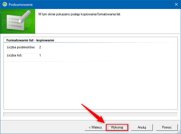 7. Kliknięcie przycisku Wykonaj rozpocznie kopiowanie parametrów list.