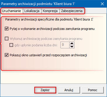 Kategoria: Archiwizacja, Operacje zbiorcze, Parametry