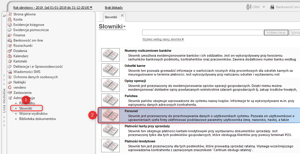 1. Z listy modułów wybrać Administracja – Słowniki, a następnie z listy słowników wybrać Personel.