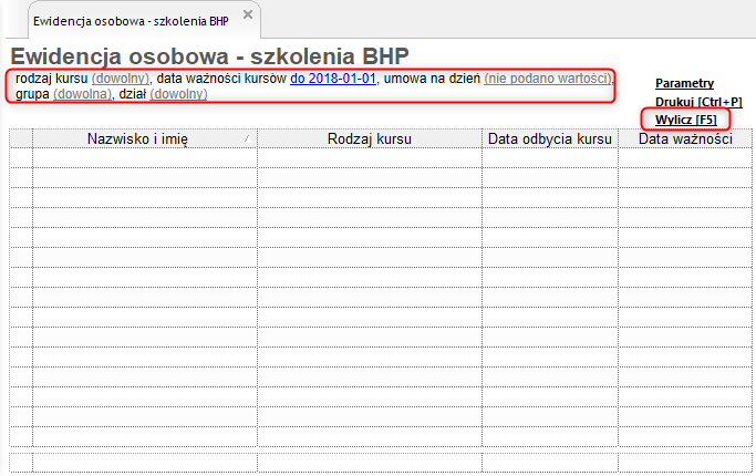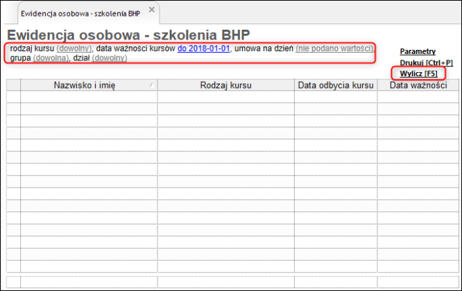 Aby wyliczyć zestawienie prezentujące termin ważności szkoleń BHP dla wszystkich pracowników, należy: