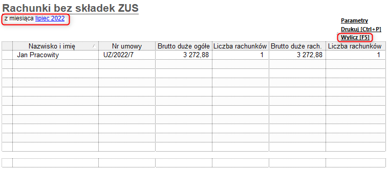 Aby wyliczyć zestawienie prezentujące rachunki niezawierające składek ZUS, należy: