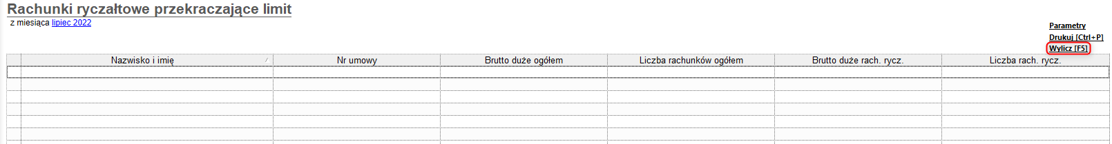 Gratyfikant GT – Jak wyliczyć zestawienie prezentujące rachunki ryczałtowe przekraczające limit?