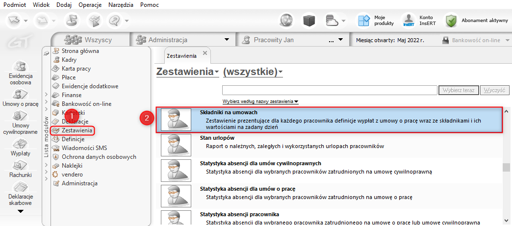 Gratyfikant GT – Jak wyliczyć zestawienie prezentujące składniki na umowach?