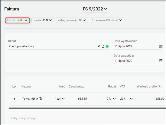 Drukując fakturę na drukarce fiskalnej, należy pamiętać, że dokument powinien liczony być od brutto – w innym przypadku przycisk fiskalizacji będzie niedostępny.