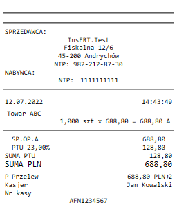 Subiekt 123 – Wydruk NIP-u nabywcy na drukarce fiskalnej