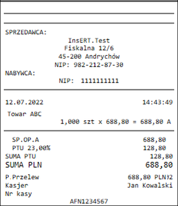 Po zafiskalizowaniu dokumentu, NIP nabywcy powinien ukazać się na wydruku fiskalnym.