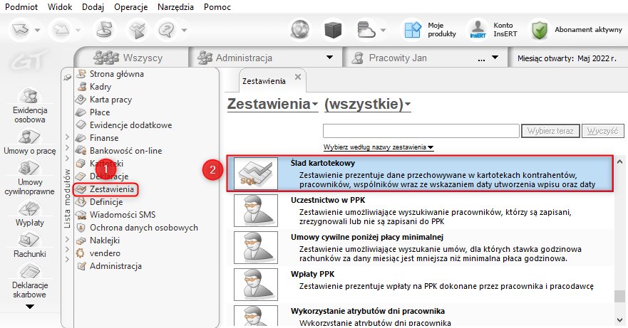 Gratyfikant GT – Jak wyliczyć zestawienie prezentujące ślad kartotekowy?
