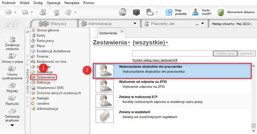 Gratyfikant GT – Jak wyliczyć zestawienie prezentujące wykorzystanie atrybutów dni pracownika?