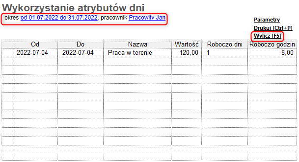 1. Przejść do modułu Zestawienia i wybrać z listy Wykorzystanie atrybutów dni pracownika.