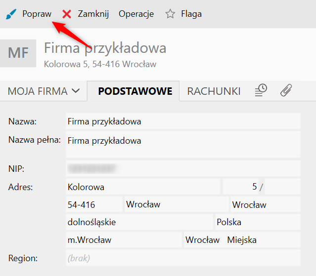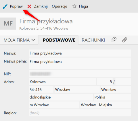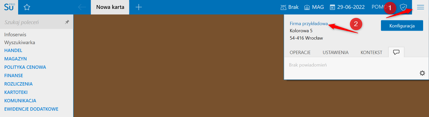 1. Rozwinąć menu ≡ znajdujące się w prawym górnym rogu programu i kliknąć nazwę firmy.
