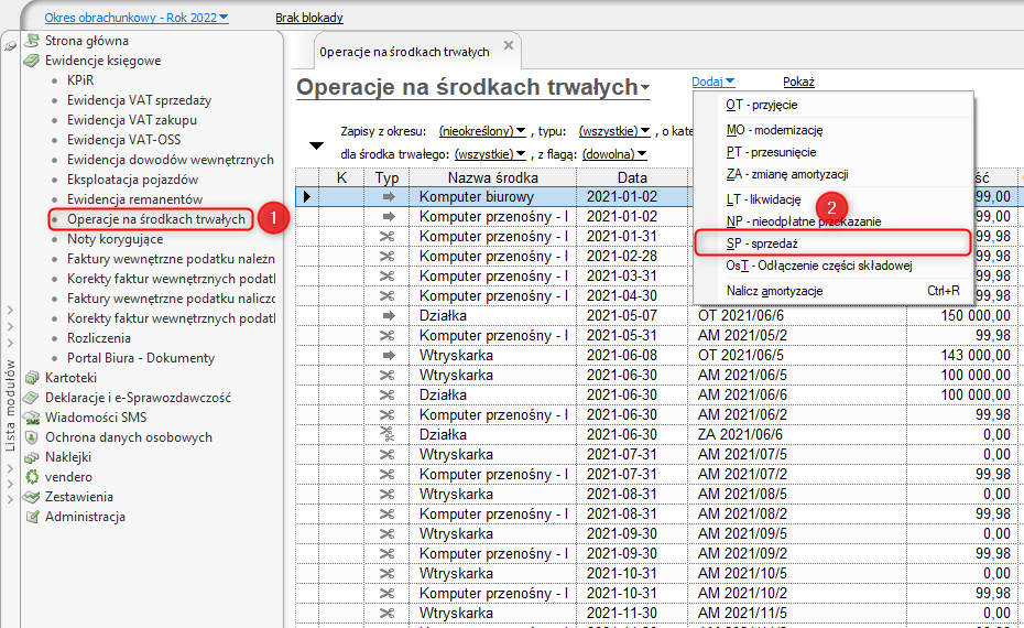 InsERT GT – Jak dodać amortyzację wraz ze sprzedażą środka trwałego na ostatni miesiąc okresu obrachunkowego?