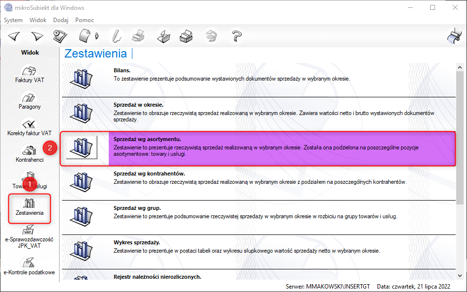 mikroSubiekt – Jak wygenerować zestawienie prezentujące sprzedaż wg asortymentu w wybranym okresie?