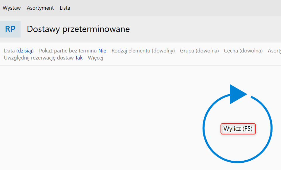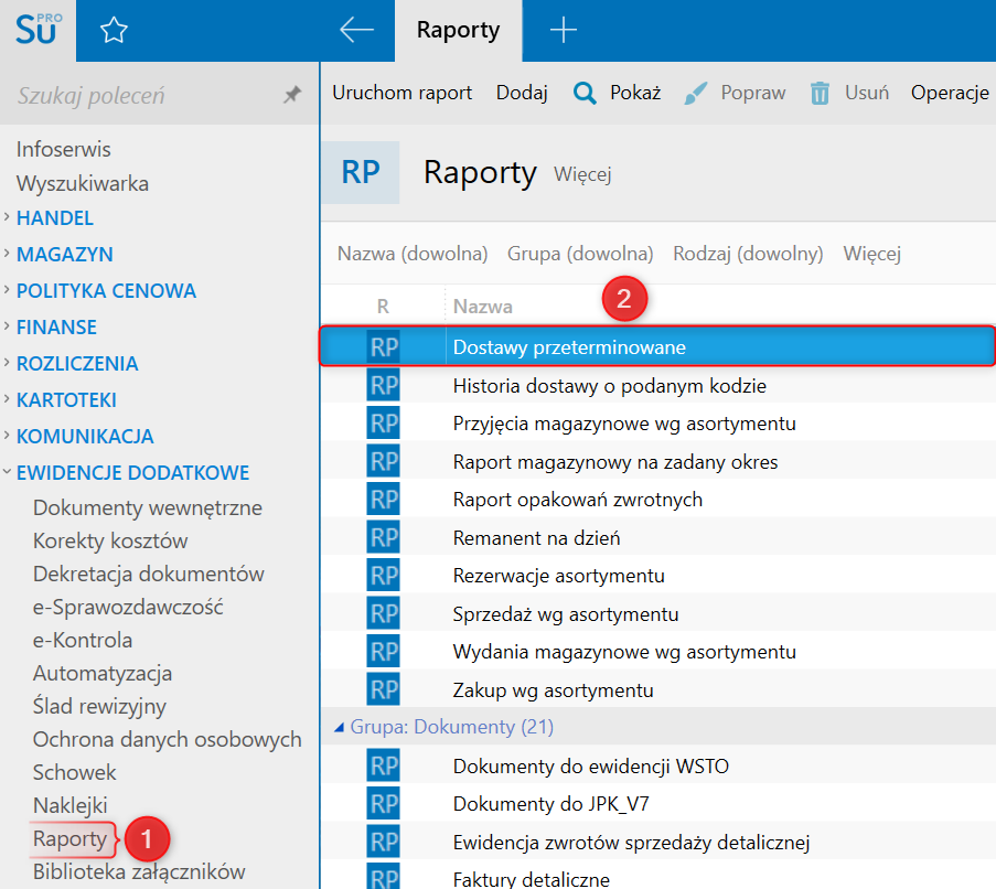 Aby wyliczyć rapor​t prezentujący dostawy przeterminowane, należy:
