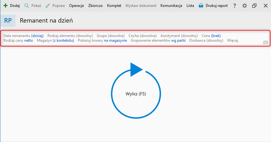 Uwaga! Remanent na dzień nie służy do wykonywania inwentaryzacji. W tym celu powstał osobny moduł Magazyn Inwentaryzacja.