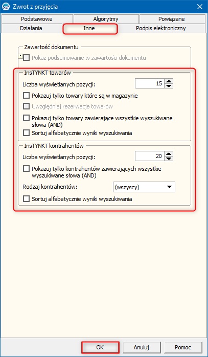 Subiekt GT – Jak zmienić konfigurację InsTYNKTu dla zwrotów przyjęć zewnętrznych?
