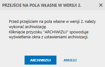 Podczas procesu migracji użytkownik zostanie poproszony o wykonanie archiwizacji podmiotu,