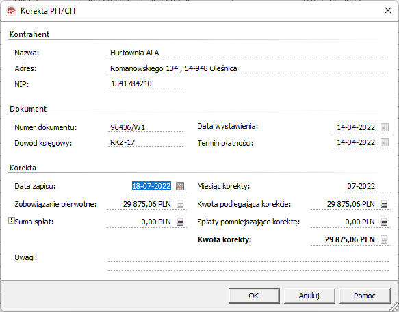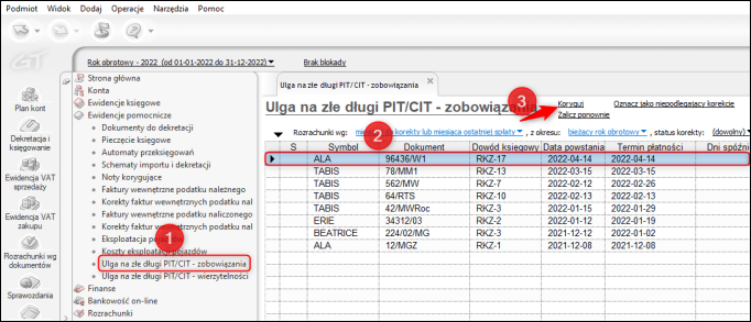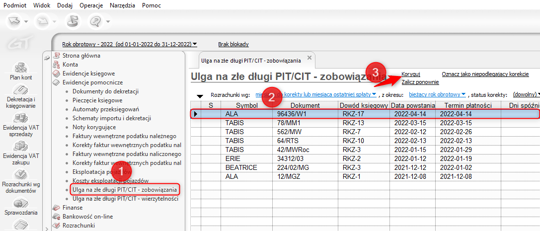 Aby wykonać korektę zobowiązania (złe długi) w celu ujęcia go w deklaracji PIT/CIT, należy: