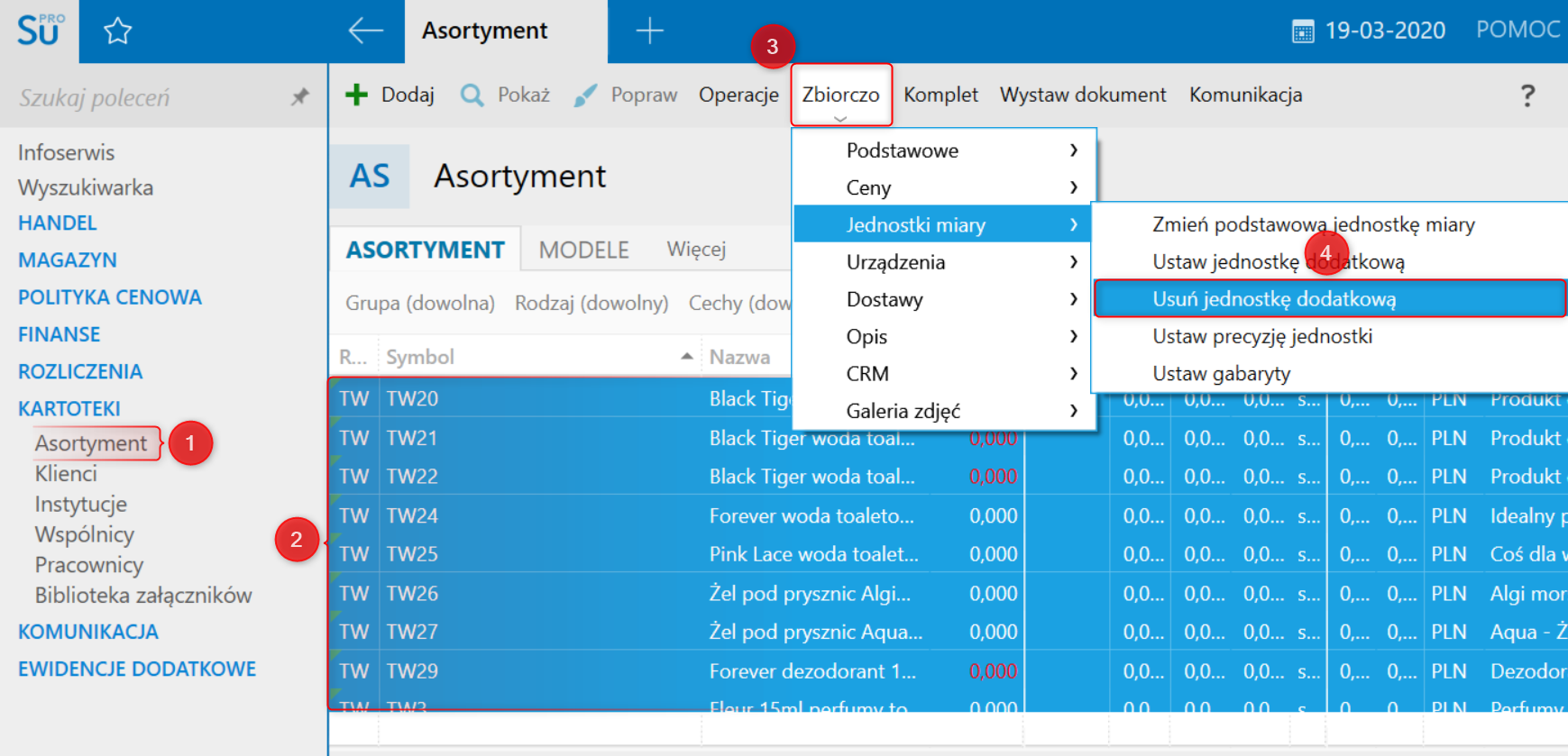 Subiekt nexo – Jak zbiorczo usunąć dodatkową jednostkę miary w kartotekach asortymentu?