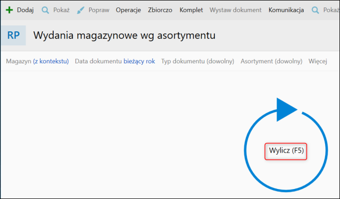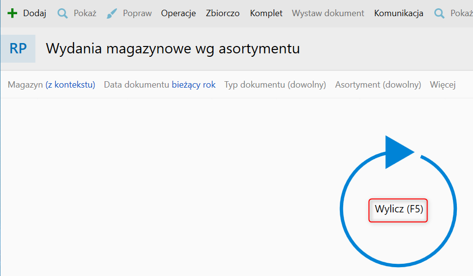 Aby wyliczyć raport prezentujący wydania magazynowe wg asortymentu, należy: