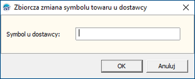 3. W oknie należy wprowadzić symbol u dostawcy, a zmiany zatwierdzić przyciskiem OK.