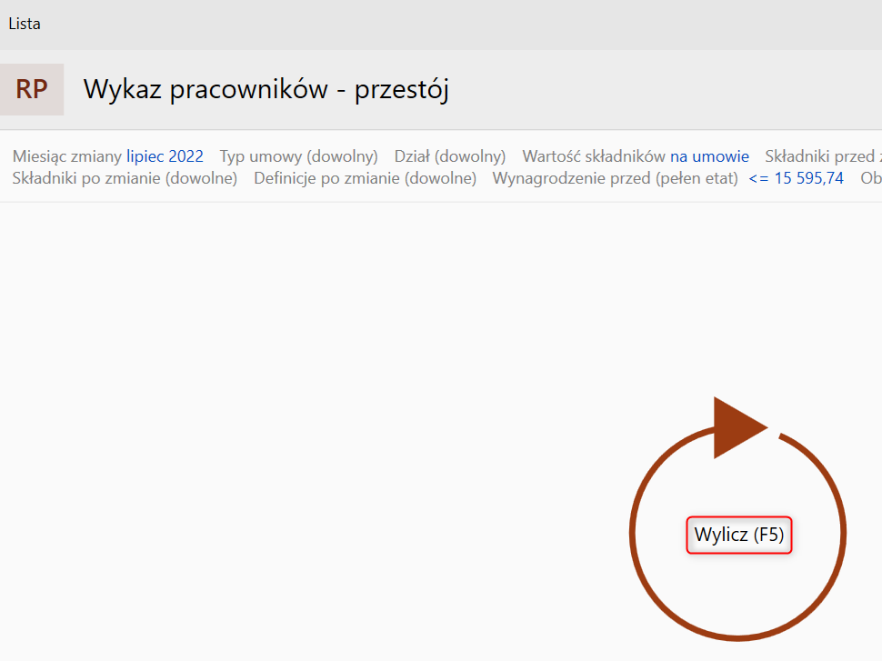 Aby wyliczyć raport Wykaz pracowników – przestój, należy:
