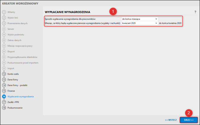 8. Ustalić Sposób wypłacania wynagrodzenia dla pracowników oraz Miesiąc, za który będą wypłacone pierwsze wynagrodzenia.