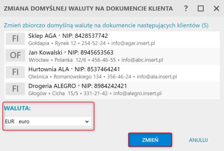 InsERT nexo – Jak zbiorczo zmienić klientom domyślną walutę wystawianych dokumentów sprzedaży?