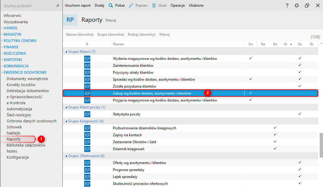 Subiekt nexo – Jak wyliczyć raport prezentujący zakup według kodów dostaw, asortymentu i klientów?