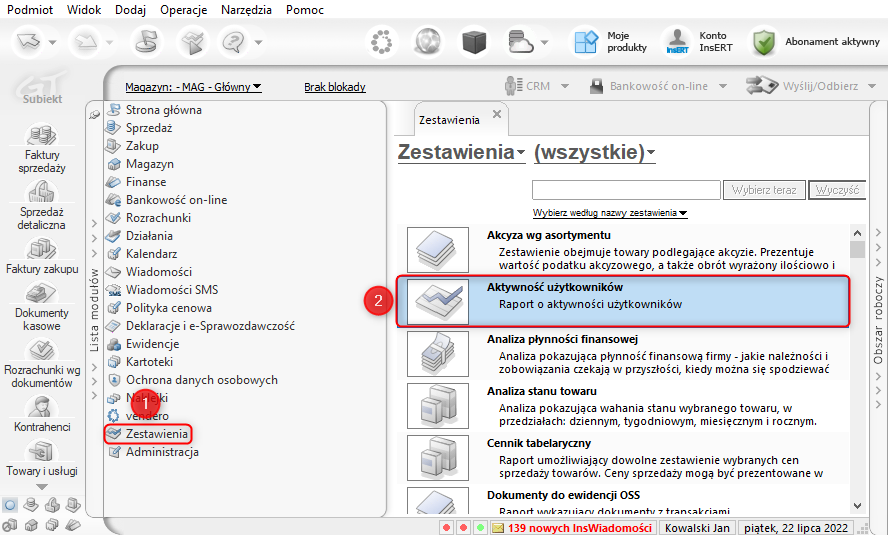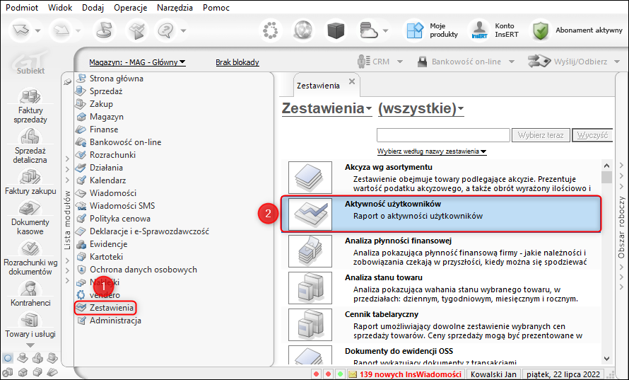 Subiekt GT – Jak wyliczyć zestawienie prezentujące aktywność użytkowników?