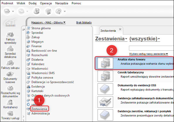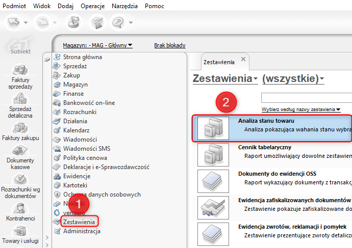Subiekt GT – Jak wyliczyć zestawienie prezentujące analizę stanu towaru?