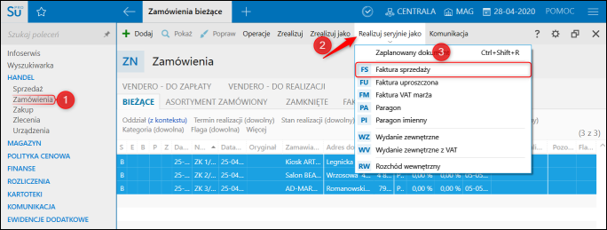 Subiekt nexo – Jak zbiorczo zrealizować zamówienia od klienta w faktury sprzedaży?