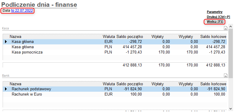 Aby wyliczyć zestawienie prezentujące stan finansów firmy w danym dniu (wynikający z podsumowania operacji finansowych i rozrachunków), należy: