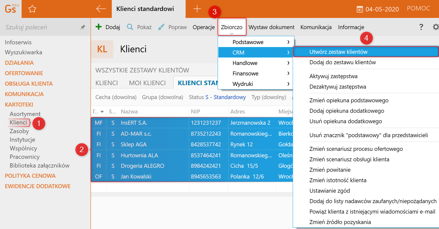 Kategoria: Klienci, Kontrahenci, Operacje zbiorcze