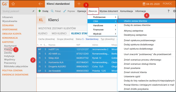 W celu zbiorczego utworzenia zestawu klientów w programie Gestor nexo należy: