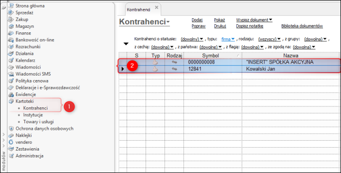 1. Przejść do modułu Kartoteki – Kontrahenci i zaznaczyć wybrane pozycje na liście.